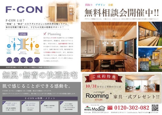 株式会社モデストは、昨今高まりを見せる高断熱レベルと省エネレベルを求める住宅購入者層に応えるべく、断熱等級6等級、HEAT20・G2水準のモデルハウスをOPENしました。又、健康室温に注目が集まる昨今、自然環境の温度変化と同じ「輻射・放射」の原理を応用した全館空調F-CONを設置することで風も音も無く、四季を通じて常に快適な室内温度を保つ住宅を体感することができます。