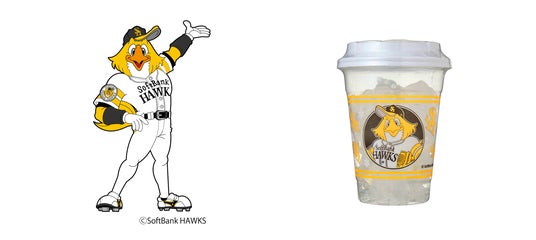 小久保製氷のナショナルブランド商品「ロックアイス(R)グラス」と福岡ソフトバンクホークスの限定オリジナル商品です。使いやすいようにロックアイスがグラスタイプの容器に入っており、アウトドアシーンはもちろんのこと、ドライブなどの移動中、職場やご自宅でも手軽にドリンクがお飲みいただけます。