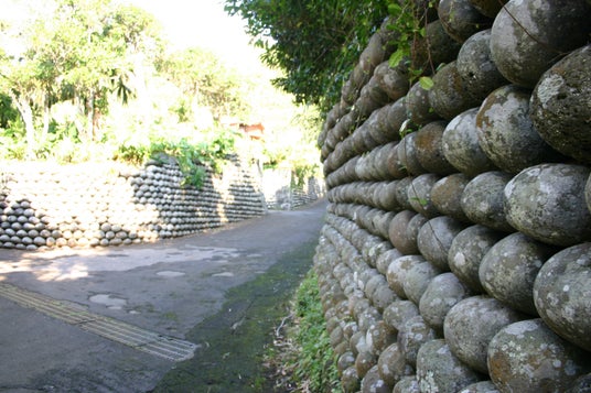 かつて流人が玉石を運び積み上げた、大里地区の玉石垣