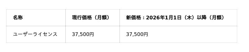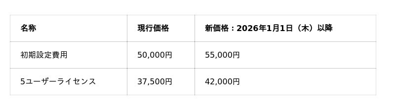 適用開始日2026年1月1日(木)以降のご納品・サービス開始分より新価格を適用いたします。