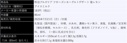 株式会社 明治(代表取締役社長:八尾 文二郎)は、濃厚なコクとなめらかな食感、さっぱりとした後味でご好評をいただいている「明治ブルガリア フローズンヨーグルトデザート」より、「明治ブルガリア フローズンヨーグルトデザート 塩レモン」を、7月21日 (月)より全国にて発売します。