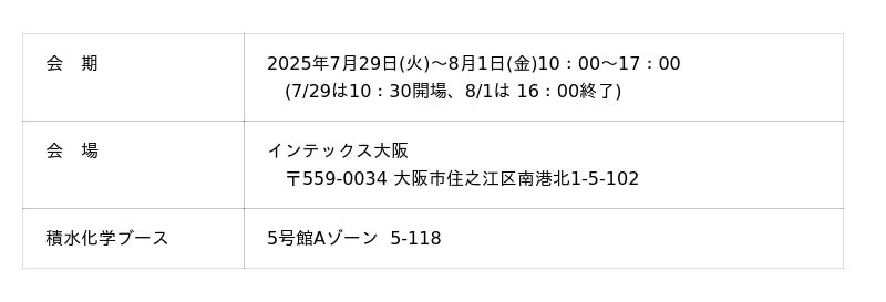 ぜひ、積水化学ブースへのご来場をお待ちしております。