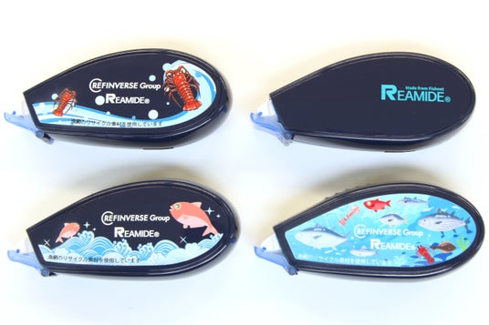 今回の「廃漁網の回収とリサイクルプロジェクト」で回収した漁網も、REAMID(R)Eとして再生され、さまざまな製品の原材料として再び社会に循環していきます。また本プロジェクトでは、REAMIDEをカバー部分に使用した「テープのり」のノベルティを配布しました。