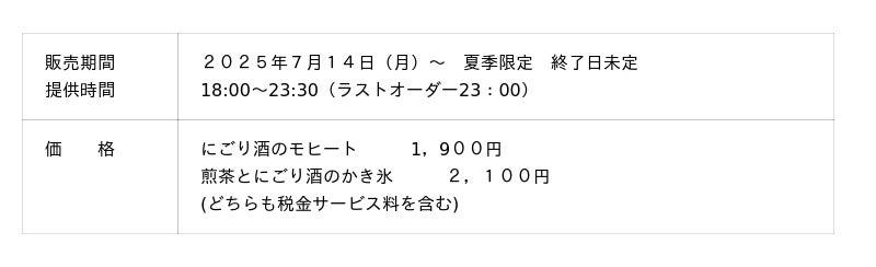コートヤード・マリオット銀座東武バー KORINは国産銘酒を多数取り扱う有限会社アズザクロウフライ(代表者:小林 信秀)を協業パートナーに迎え運営するホテルのメインバー。海外からの滞在客も多く利用するホテルのメインバーで、海外でも50か国ほどで販売され人気を博する「上撰 白鶴 純米にごり酒 さゆり」(以下「さゆり」)を用い、バーテンダーが考案したのはカクテル「にごり酒のモヒート」と「煎茶とにごり酒のかき氷」の2種。