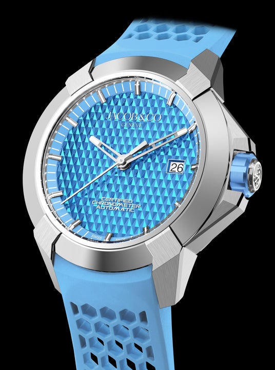 25年新作「エピックXスポーツ スカイブルー」が銀座ブティックへ待望の入荷ジェイコブ&コーの人気シリーズ「エピックX」より、よりアクティブに進化した「エピックX スポーツ スカイブルー」がついに銀座ブティックに入荷いたしました。ラグジュアリーな光沢を放つステンレススティールケースに、ブランドならではのダイヤパターンをあしらったダイヤルとデイト表示を搭載。さらに、ジェイコブ&コー初のC.O.S.C.認定クロノメーターであり、エピックXコレクション最小径となる41mmのケースサイズに、最高水準のパフォーマンスが凝縮されています。日常からスポーツシーンまで幅広く活躍する、洗練されたラグジュアリースポーツウォッチ。この機会にぜひ店頭でお確かめください。