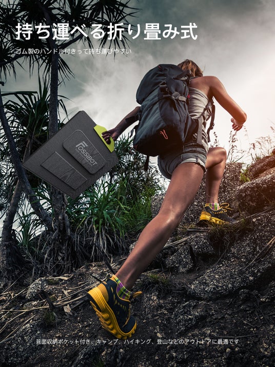 FOSSiBOT ポータブル電源は、超大容量のリン酸鉄バッテリーを搭載し、ソーラーパネルを使った太陽光による充電は、環境に優しいだけでなく災害時の心強い味方に。