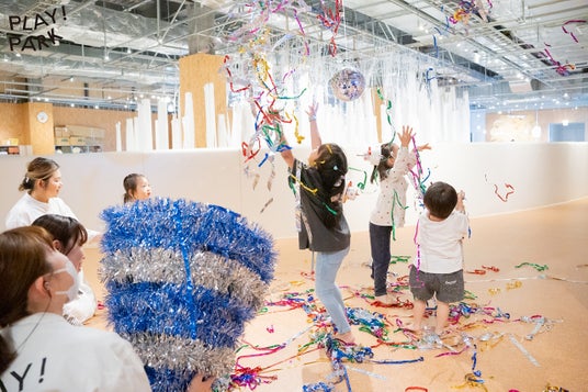 PLAY! PARKは、2020年6月に誕生した、子どもが自由な発想で遊べる新しい屋内広場です。約1,000平方メートル の空間は、「ふじようちえん」の設計で知られる手塚建築研究所がデザインしました。PLAY! PARKの名物〈大きなお皿〉を中心に、工具や道具を使ってものづくりができる〈ファクトリー〉、『はらぺこあおむし』の作者エリック・カールの絵本づくりを参考に、世界に1枚だけの色紙「PLAY! PAPER」が作れる〈絵の具コーナー〉など、計10個のエリアで遊べます。 毎日日替わりで開催される赤ちゃん向け・小学生向けワークショップも人気です。