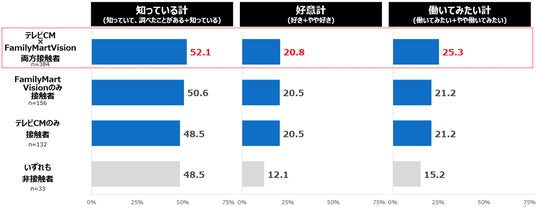 「FamilyMartVisionのみ接触者」は「テレビCMのみ接触者」と同等以上の効果を確認できました。