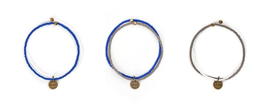 The Simplest Actブレスレット(1、650円税込み)はブルー×グレー、ホワイト×グレー、ブルー×ホワイトで展開。