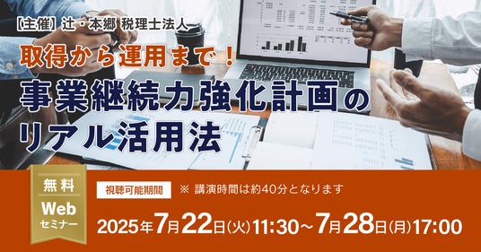 辻・本郷 税理士法人(本社:東京都新宿区、理事長:桑木小恵子)は、2025年7月22日より「取得から運用まで! 事業継続力強化計画のリアル活用法」セミナーを開催いたします。