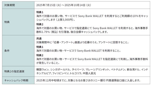 Sony Bank WALLET 海外利用キャッシュバックキャンペーン実施のお知らせ