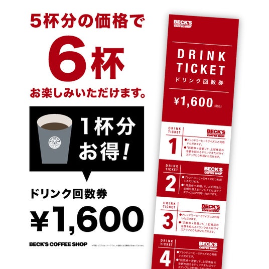 「ドリンク回数券(6枚つづり)」(1,600円相当)