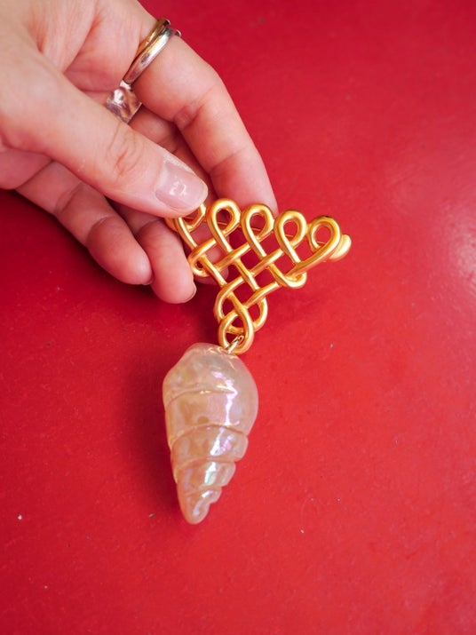 さらに、同コレクションに合わせて、デッドストックパーツを使用した「Mariscos(マリスコス)貝ブローチ」も登場。夏らしいオーロラカラーの2色を数量限定で販売いたします。