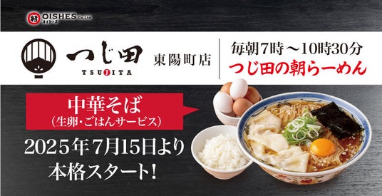 人気飲食店の「金子半之助」や、「中華そば専門 田中そば店」などをグループで運営するオイシーズ株式会社(所在地:東京都千代田区、代表取締役:工藤 智)傘下の株式会社 H.I.T WORLDは、2025年7月15日(火)、つじ田 東陽町店にて「つじ田の朝らーめん」を販売開始いたします。