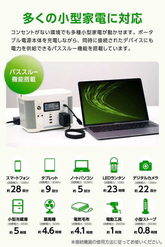 ・リチウムイオン充電池採用 (充電池容量:288Wh/80,000mAh 3.6V換算)