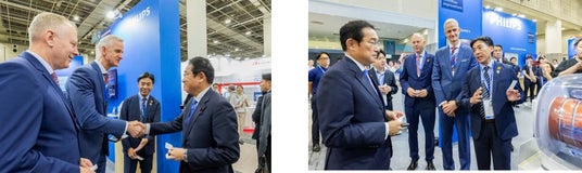 最終日には、前内閣総理大臣 衆議院議員 岸田文雄氏がフィリップスのブースを訪れ、ヘリウムフリーの次世代MRI「BlueSeal」などを視察されました。