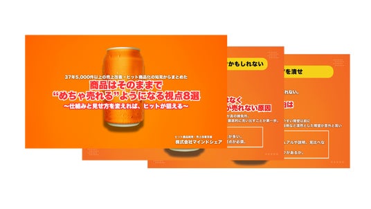 食品・菓子・飲料・酒類メーカー、ヘルスケアメーカーの経営・ブランド・マーケティング・開発・営業・広告・販促チームなど37年5,000件以上の支援実績を有する株式会社マインドシェア(東京都港区)は、同社が開催するマーケティング講習やセミナーで大好評の独自ノウハウを抜粋した資料の第1弾『商品はそのままで“めちゃ売れる”ようになる視点8選』を無料公開いたしました。