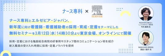 ナース専科とエルゼビア・ジャパン、新年度に向け看護師・看護補助者の採用・育成・定着をテーマにした無料セミナーを3月12日(水)14時30分より東京会場、オンラインにて開催