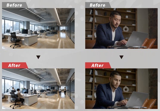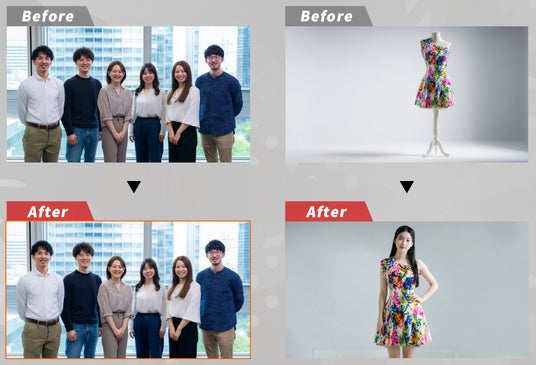 → 撮影済みのオフィス映像などに、AIで空間演出・キャストを追加・顔の差し替え