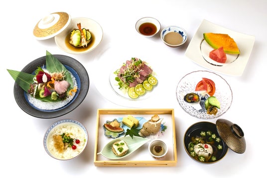 旬の食材を涼やかに仕立てた、夏ならではの懐石コース。特撰A5和牛の「涼風しゃぶしゃぶ」をはじめ、職人の技と感謝の想いを込めたお料理をご提供いたします。