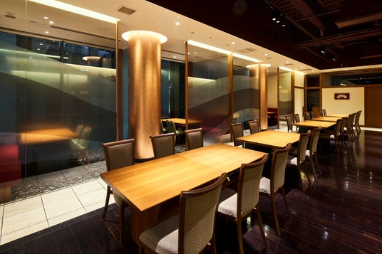 カジュアルなテーブル席の奥には、マロニエ通りを一望できる半個室。
