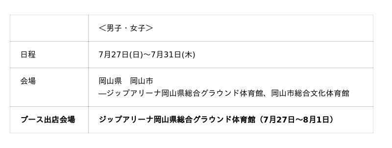日本シグマックス株式会社(本社:東京都新宿区、代表取締役社長:鈴木 洋輔)は、中国ブロックで開催される「令和7年度 全国高等学校総合体育大会(インターハイ)」のバスケットボール及びバレーボール、サッカー会場にて、ザムスト特設ブースを出店いたします。