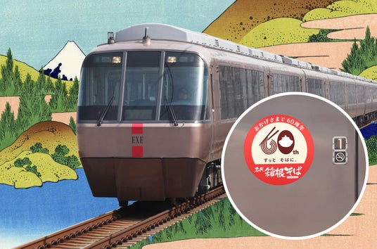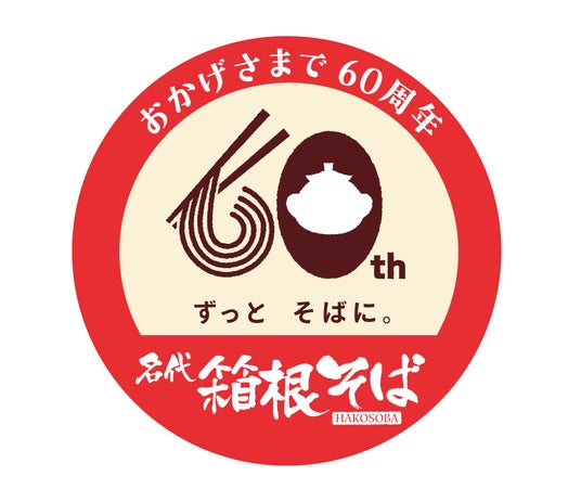 株式会社小田急レストランシステム(本社:東京都渋谷区 代表取締役社長:深海尚)が運営する箱根そば」が今年開業60周年を迎えるのを記念して、『箱そばの日』にあたる2025年8月5日(火)から1月中旬頃まで、特急ロマンスカー・EXE(30000形)の車体側面に“箱根そば60周年記念マーク”を掲出した記念車両を運行します。運行初日には、特別なヘッドレストカバー装飾を施した車内で箱根そばグッズが当たるゲームなどを楽しむイベント列車も運行します。このほか、今年度は店舗でも60周年記念メニューの提供など多数のイベントを実施してまいります。