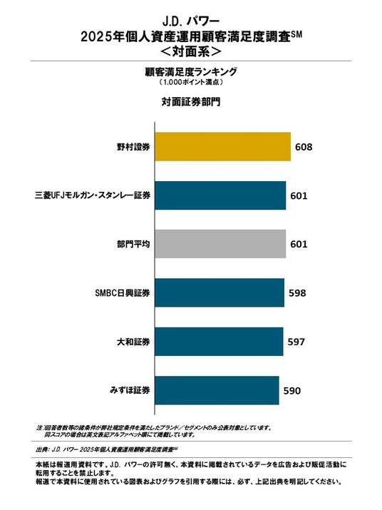 CS(顧客満足度)に関する調査・コンサルティングの国際的な専門機関である株式会社J.D. パワー ジャパン(本社:東京都港区、CEO:木本卓、略称:J.D. パワー)は、2025年個人資産運用顧客満足度調査の結果を発表した。