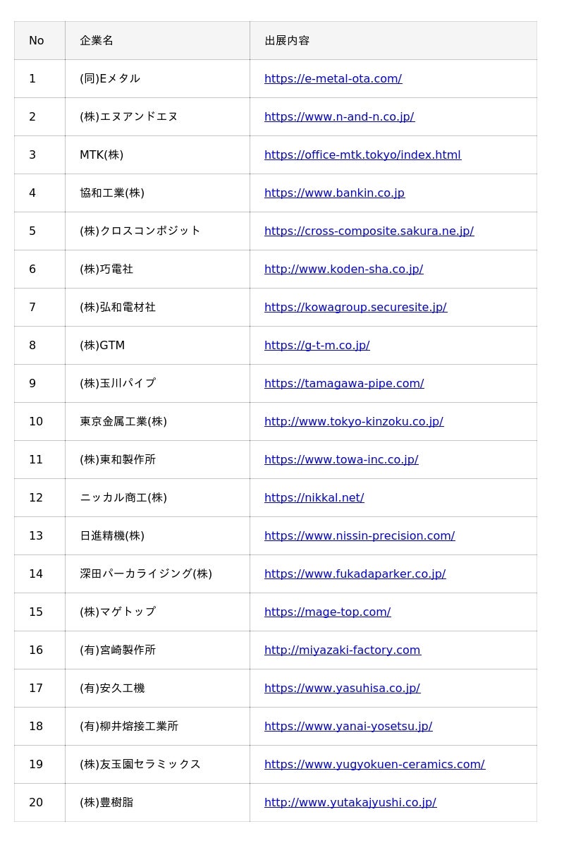 「ものづくりのまち」東京・大田区企業20社が集結!