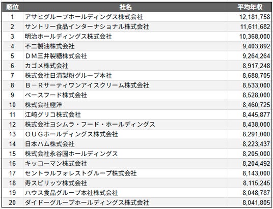株式会社SalesNow(本社:東京都渋谷区、代表取締役:村岡功規、以下「当社」)は、国内540万社の企業情報を完全網羅した日本最大級のデータベース「SalesNow DB」より、上場企業における食品業界の平均年収ランキングTOP20をお知らせします。