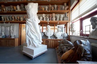フランス文化省管轄の商工業的公共機関(EPIC)、グラン・パレRmnが運営する芸術工房(アトリエ・ダール)は、カルコグラフィー工房とムラージュ工房の二つの工房の事を指します。ムラージュ工房は1794年ルーブル美術館内に設立されて以来、彫刻(彫塑)作品のオリジナルから直接「石膏型取り」をする技術を伝承し、多くの美術館・シャトー(城) より依頼され制作された6,000以上の石膏型を保存。またその型を元に石膏複製彫刻を作る工房。