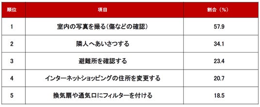 ~1位 「室内の写真を撮る(傷などの確認)」 57.9%~