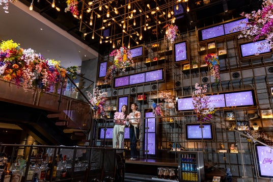 人気エリアのロビーラウンジでは、館内で花見気分を楽しめるフラワーアートを用いた空間演出を実施しています。様々なトーンのピンク色に加えて、春の爽やかさを感じる黄色や緑、暖色の照明の下でエレガントな雰囲気を醸し出す青や紫の花々を組み合わせ、空間を華やかに彩ります。近づいて見る時と、少し離れて眺める時でそれぞれ異なる楽しみ方ができるようデザインされており、照明やサイネージディスプレイとの融合も見どころです。館内を散策しながら写真撮影を楽しんだり、フラワーアートを眺めながら季節限定のスイーツやドリンクを味わって、春らしいひとときをお過ごしください。
