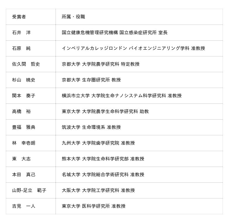 <バイオインダストリー奨励賞受賞者 (12名)>