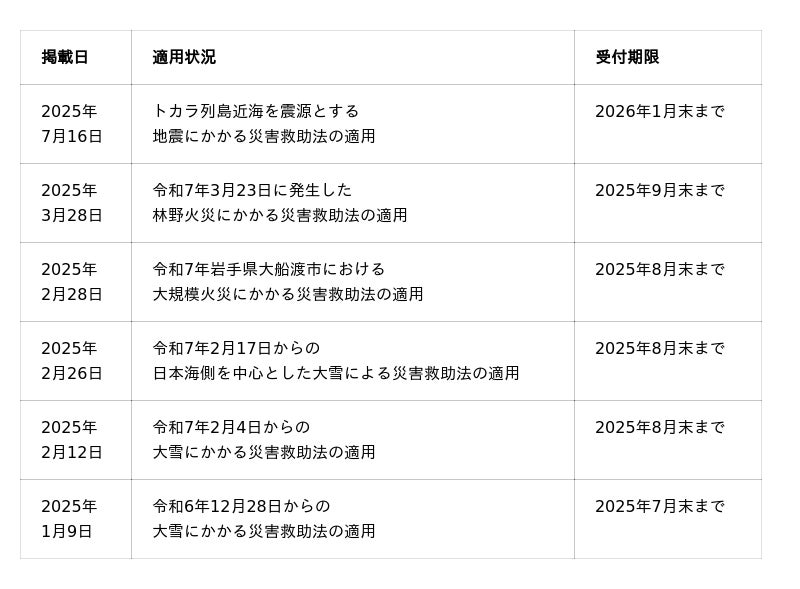 ※災害救助法適用地域の最新情報は内閣府のホームページにてご確認ください。
