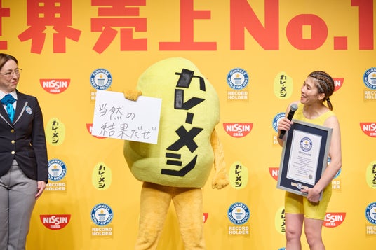 日清食品株式会社(代表取締役社長:安藤徳隆)は、「日清カレーメシ」シリーズが“最も売れているインスタント味付きカップライスブランド”としてギネス世界記録(TM) (*1) に認定されたことを記念して、2025年7月16日(水) に「品川ザ・グランドホール」で「ギネス世界記録(TM)認定授与式・新CM発表会」を開催しました。