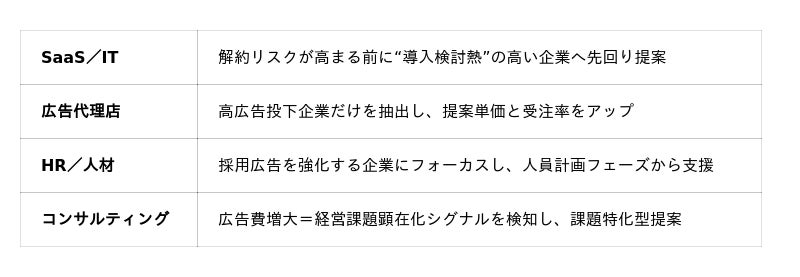 “今まさに広告に投資し、事業を前のめりに推進している企業” が分かれば、