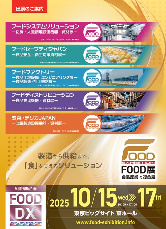 <出展申込締切:5月30日(金)まで> 2025年10月15日(水)~17日(金)東京ビッグサイト東ホールで開催する「食品産業の複合展示会」