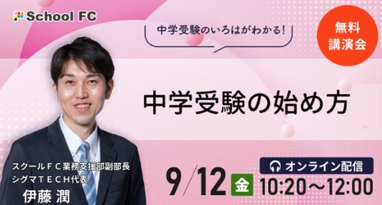 また、その代表・伊藤潤による無料オンライン講演会「中学受験の始め方」を開催いたします。中学受験には子育ての難しさが詰まっていますが、親子が大きく成長するチャンスでもあります。本講演では「幸せな中学受験」をするために外せないポイントをはじめの一歩からお伝えします。