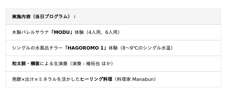 kokolo saunaでは、今回のイベントを皮切りに、体験から導入、サポートまでを一貫して提供する取り組みを全国へと広げてまいります。