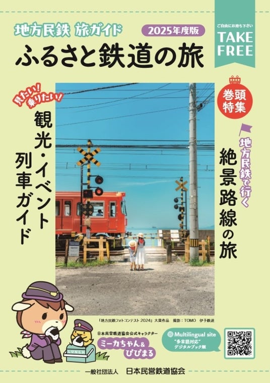 一般社団法人日本民営鉄道協会(事務局:東京都千代田区、会長:杉山健博)は、当協会に加盟する地方民鉄56社の利用促進・活性化を目的として、2025年7月31日(木)から、地方民鉄56社の沿線観光情報を取りまとめたガイドブック『地方民鉄 旅ガイド-ふるさと鉄道の旅-』(2025年度版)を配布します。