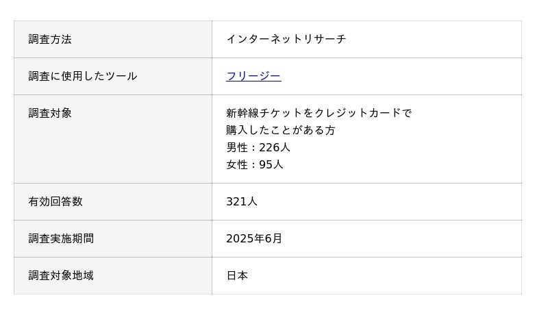 新幹線チケットのクレジットカード購入に関するアンケート調査