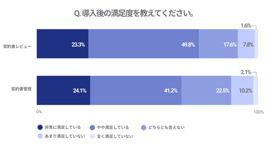 すでに半数の企業が契約書レビューツールを導入。約7割が満足するも2割超が「別ツールへ切り替え検討」と回答