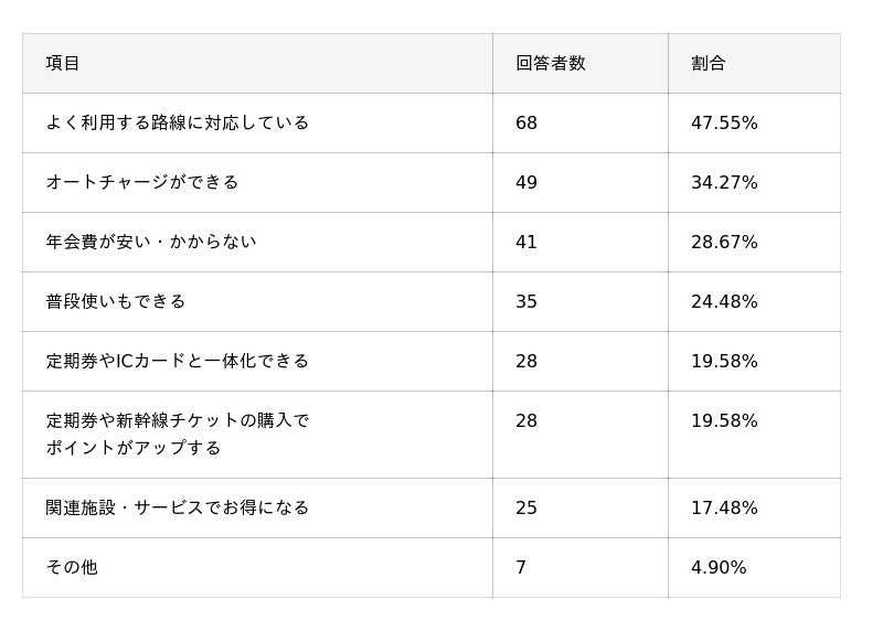 交通系クレジットカードに関する独自アンケート調査