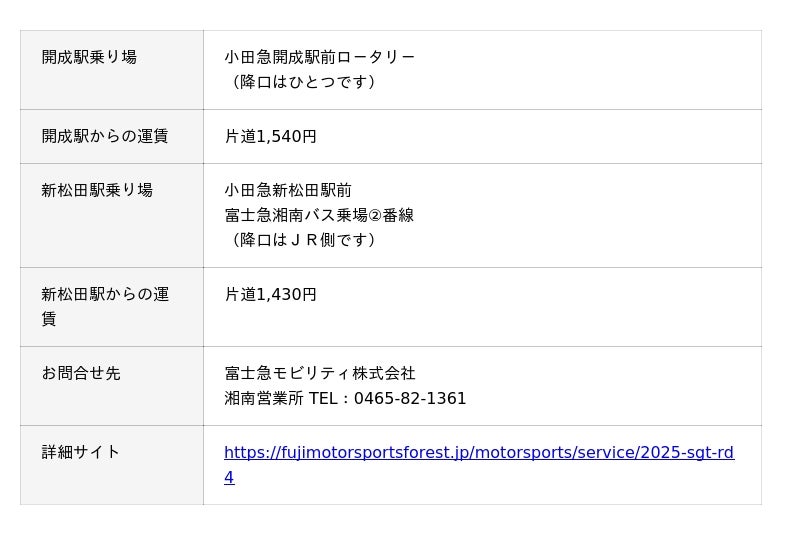 ・詳細サイト https://fujimotorsportsforest.jp/motorsports/service/2025-sgt-rd4