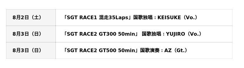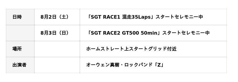 大会初日の「SGT RACE1混走35Laps」と大会2日目の「SGT RACE2GT500 50min」それぞれのスタートセレモニーにて『スペシャルグリッドライブ』を開催!