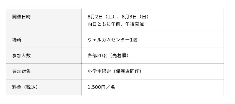 ※原則小学生限定(保護者同伴)となりますが、保護者様のご判断により小学生以下でも参加可能