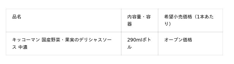 キッコーマン食品株式会社は、8月4日に、「キッコーマン 国産野菜・果実のデリシャスソース 中濃」290mlを全国で新発売します。