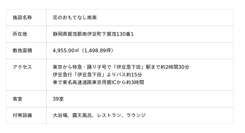 【株式会社NBIホールディングス】伊豆 花のおもてなし南楽の取得に関するお知らせ