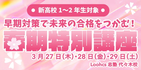 Loohcs志塾は、2025年春より「高校1・2年生向け総合型選抜対策コース」を代々木校にて新設いたします。また、3月には春期特別講座を実施し、総合型選抜への理解を深め、実践的なスキルを身につける機会を提供します。